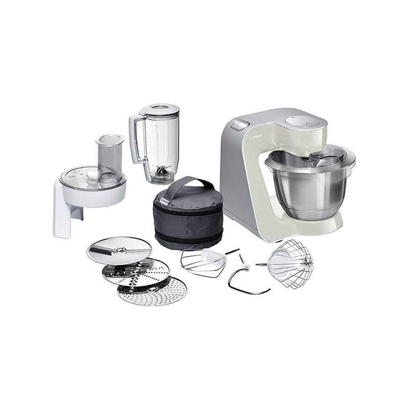 *Περιλαμβάνονται: Γάντζος ζύμης, αυγοδάρτης και αναδευτήρας, Ανοξείδωτο μπολ 3.9lt, Πλαστικό μπολ ανάμειξης, σε λευκό χρώμα, Πολυκόφτης συνεχούς ροής με 3 ανοξείδωτους δίσκους (2 διπλής όψεως για κόψιμο και τρύψιμο, 1 για θρυμματισμό), Μπλέντερ Χωρητικότητας 1.25lt, Λεμονοστύφτης, Διαφανές καπάκι με άνοιγμα για πλήρωση