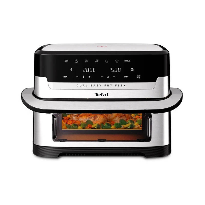 Με τη Dual Easy Fry Flex, μπορείς να χρησιμοποιήσεις τις δύο ζώνες ξεχωριστά ή να τις ενώσεις με το FlexCook και να δημιουργήσεις την τεράστια GiantZone των 9L. Το μόνο που χρειάζεται είναι ένα κλικ!