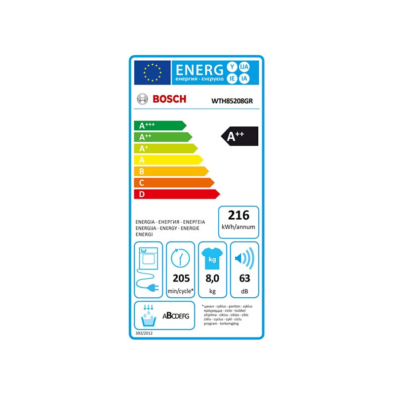 Bosch WTH85208GR Στεγνωτήριο Ρούχων 8kg A++ με Αντλία Θερμότητας